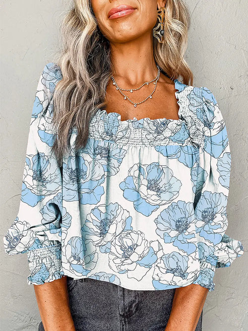 Blue Smocked Square Blouse