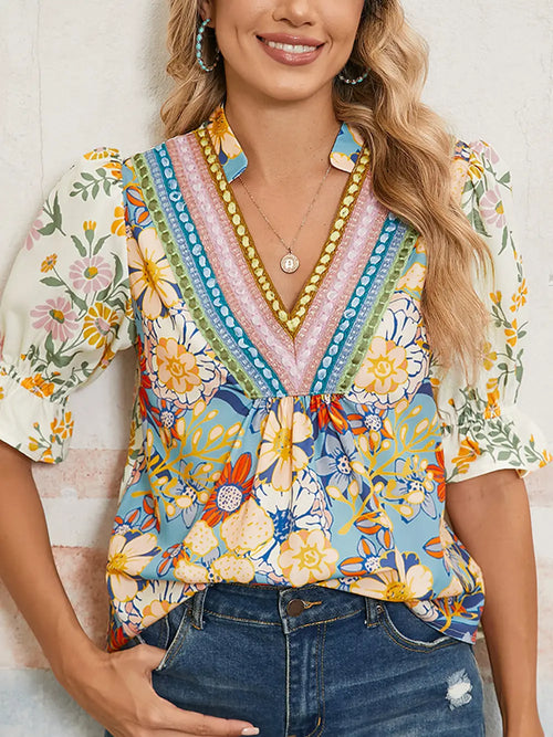 V Neck Flowy Boho Blouse