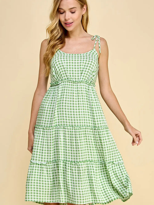 Gingham Tiered Midi Dress