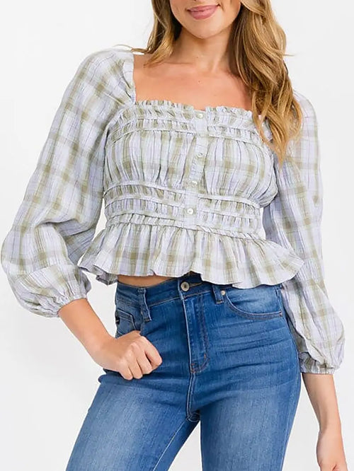 Lilac Plaid Smocked Top