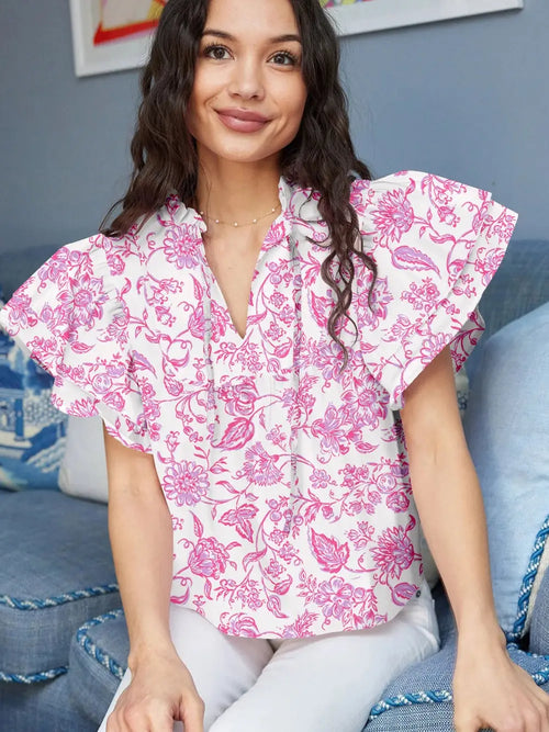 Pink Floral Chiffon Blouse