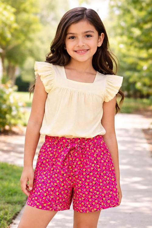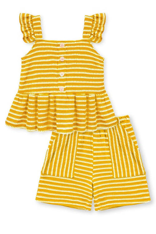 Yellow Striped Shorts Set
