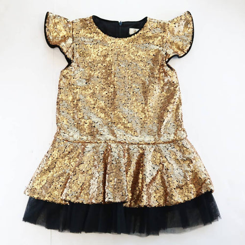 Ruffle Sleeve Gold Sequin Dress