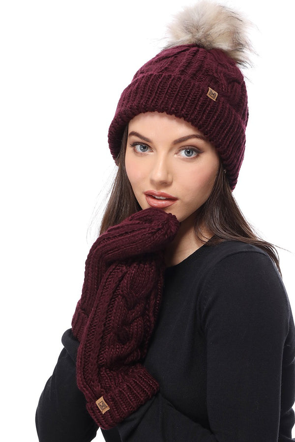 Burgandy Faux Fur Pom Beanie with Sherpa Lining