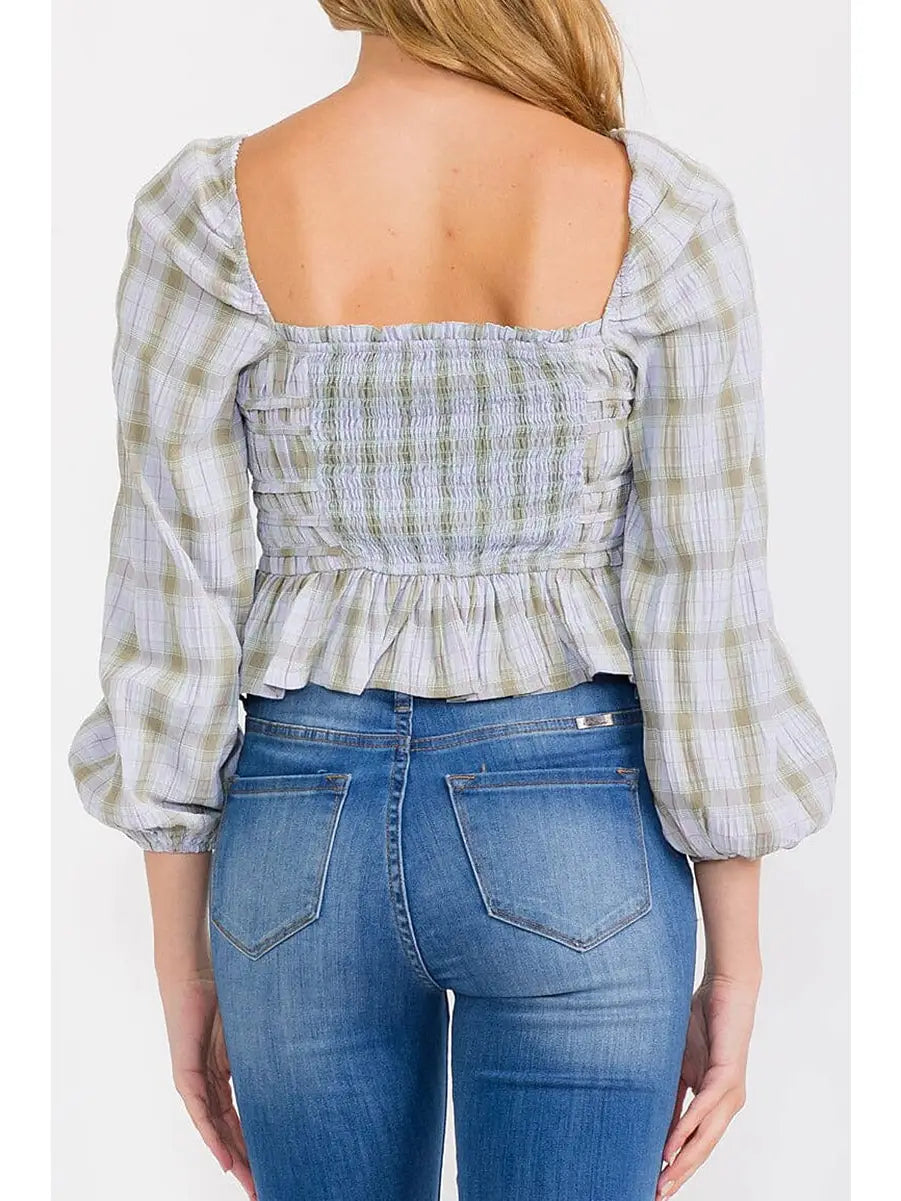 Lilac Plaid Smocked Top